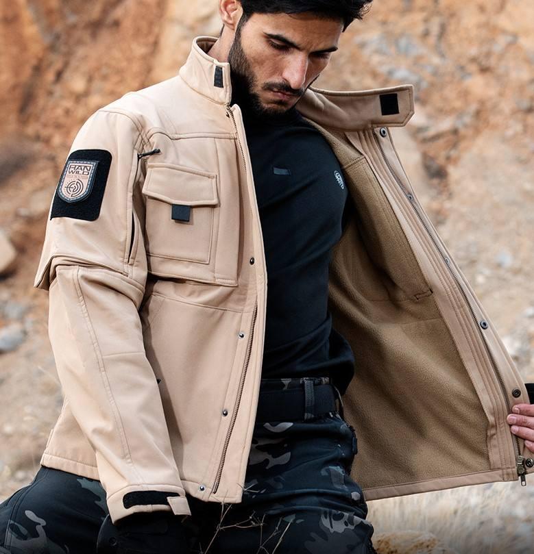 Waterproof Soft Shell Tactical Windbreaker Men's Autumn Winter Fleece Plush Jacket Thickened Warm Jacket Coat